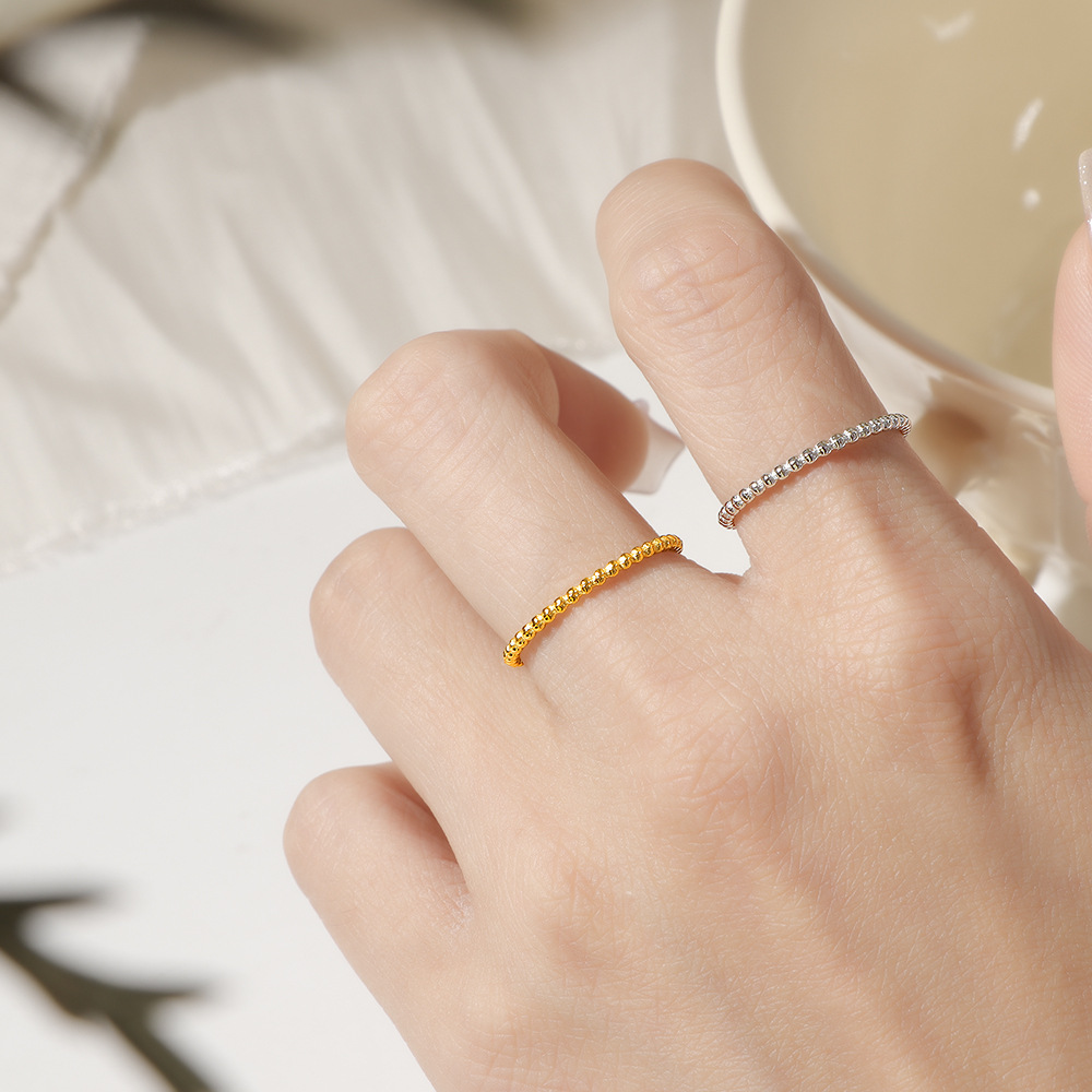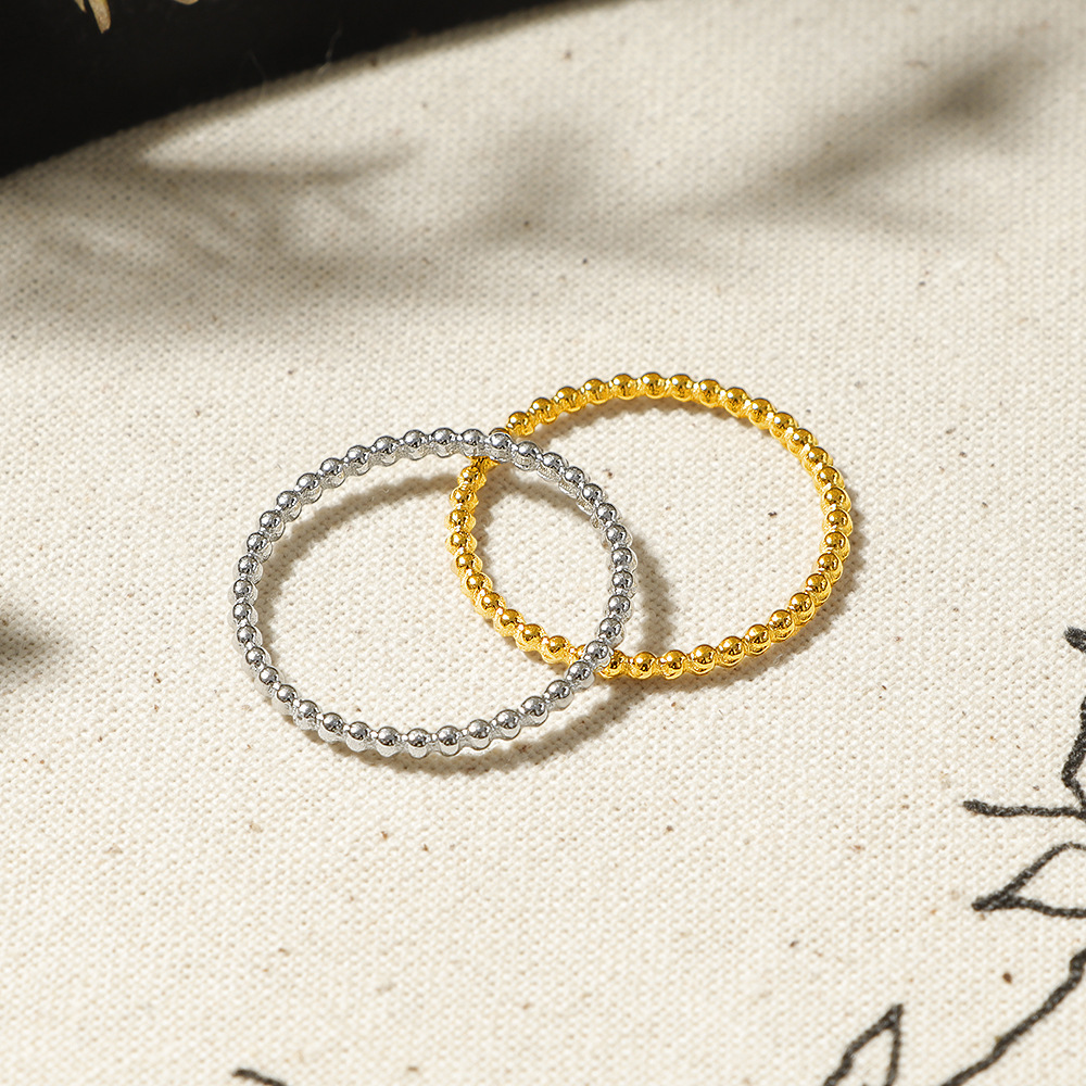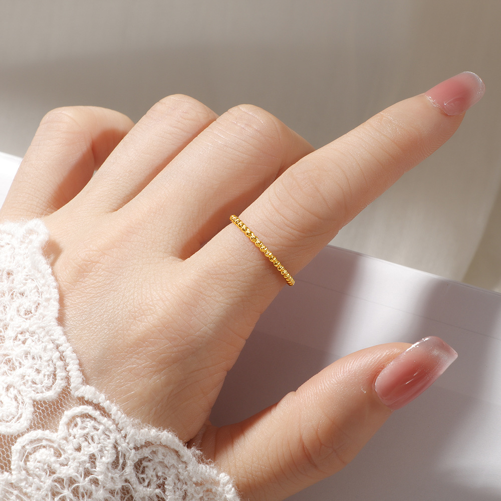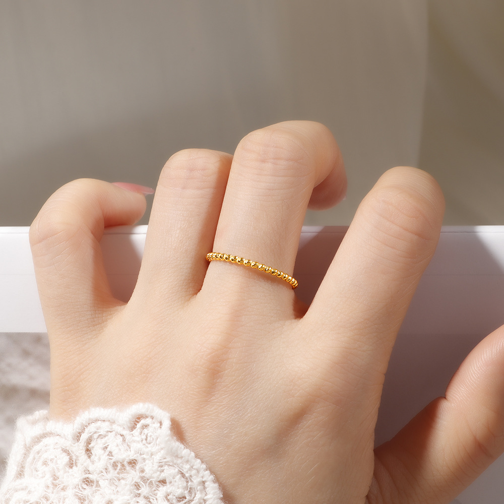 Titanium Steel Plain Circle Gold Bead Ring For Women, Stackable And Versatile